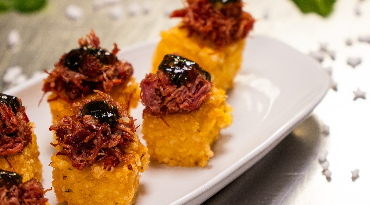 Dadinho de Tapioca & Fubá com Carne Seca e Geleia de Coentro