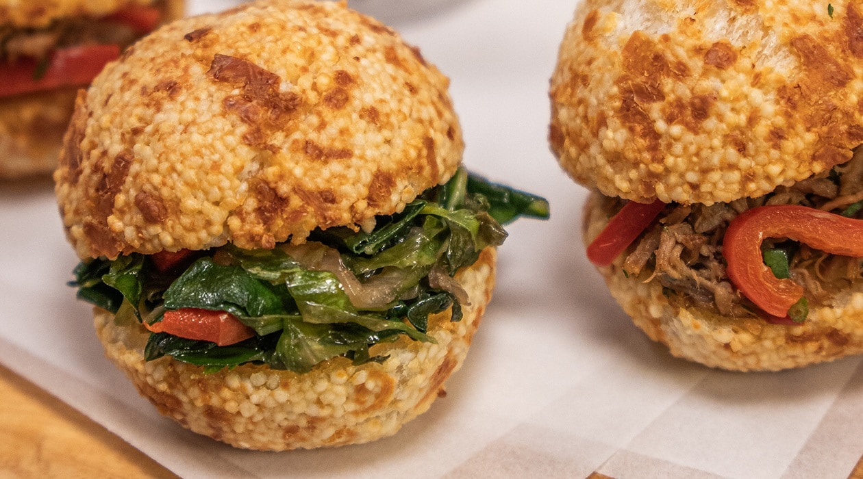 Pão de Queijo de Tapioca com Carne-Louca & Escarola